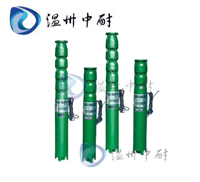 溫州中耐泵閥有限公司生產的QJ型井用潛水電泵為離心式或混流式;采用水潤滑軸承;與電機的連接采用聯軸器剛性連接。泵葉輪在電機帶動下旋轉產生離心力,使液體能量增加經泵殼的導流作用進行提水。在水泵上端設有逆止閥體,防止電泵停機時,因揚水管中倒流的水損壞工作部件。閥上有泄水孔,可將管路中的水緩緩放掉,防止冬天凍裂管路。(注:低揚程潛水泵不設逆止閥體)電機為密閉充水濕式結構。電機定子繞組采用耐水的聚乙烯絕緣,尼龍護套多層結構的電磁線。導軸承及推力軸承均采用水潤滑材質。電機內部充滿清水,用以冷卻電機和潤滑軸承。電機底部裝有調壓膜,用以調整由電機溫升引起的機體內清水的脹縮壓差。電機的上端軸上裝有防砂機構,用來阻止水中泥沙進入機體內部。管路部分:用以連接電泵使其吊裝在機井中,將水輸送到地面上去。主要由短輸水管、輸水管、彎管、夾板等部件組成。短輸出管是輸水管路與電泵的連接過度部件。彎管安裝在井口處,以改變水流的傳送方向。夾板是在電泵的安裝過程中吊裝和固定輸出管路。