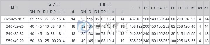 S50×32-32至S100×80-50外形尺寸